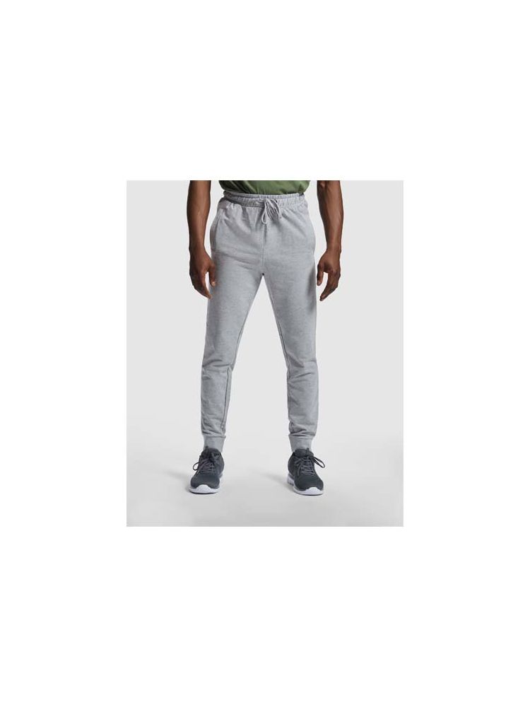 Sportowe spodnie z szerokim regulowanym pasem, sznurkiem do ściągania, dopasowanymi ściągaczami na nogawkach, wzmocnionymi szwami, prążkowanymi kieszeniami bocznymi i narożną tylną kieszenią z przeszyciem. Usuwalna etykieta.