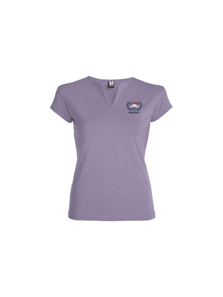 Dopasowana koszulka z okrągłym dekoltem. Rozcięcie przy kołnierzyku. Podcięte półrękawki i szwy boczne. Materiał wysokiej jakości, miękki i przyjemny w dotyku. Usuwalna metka.