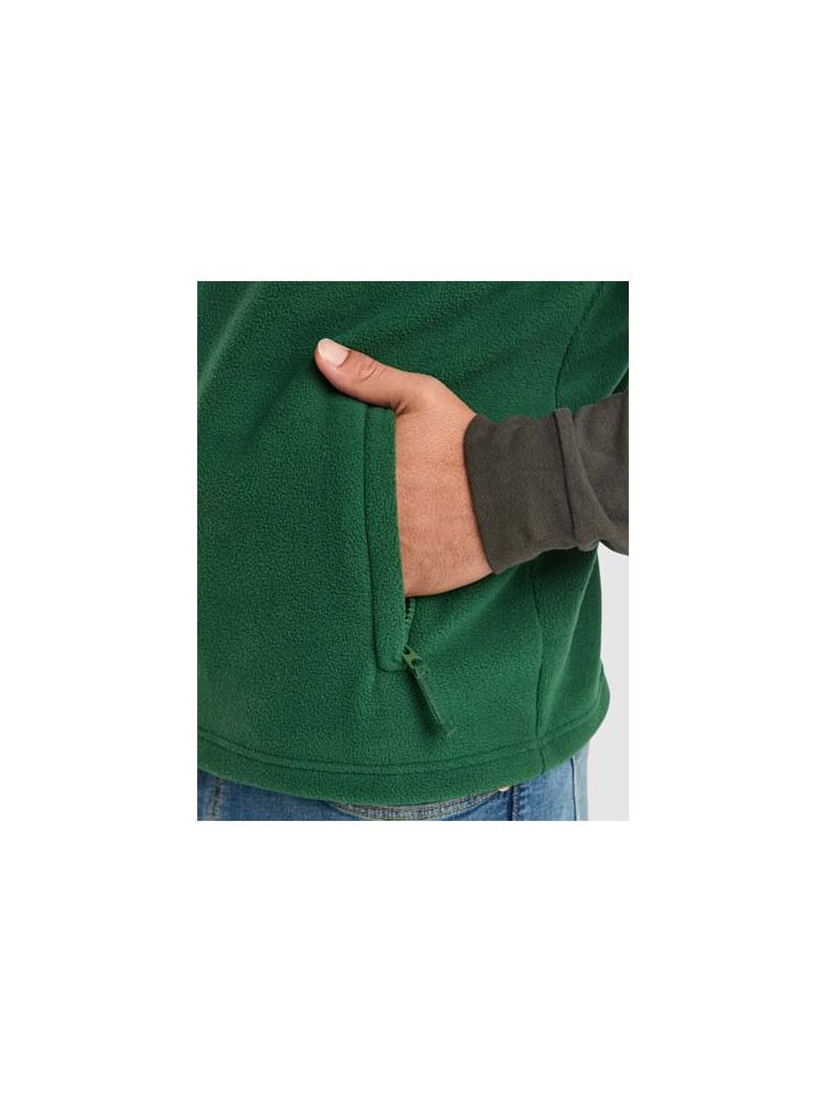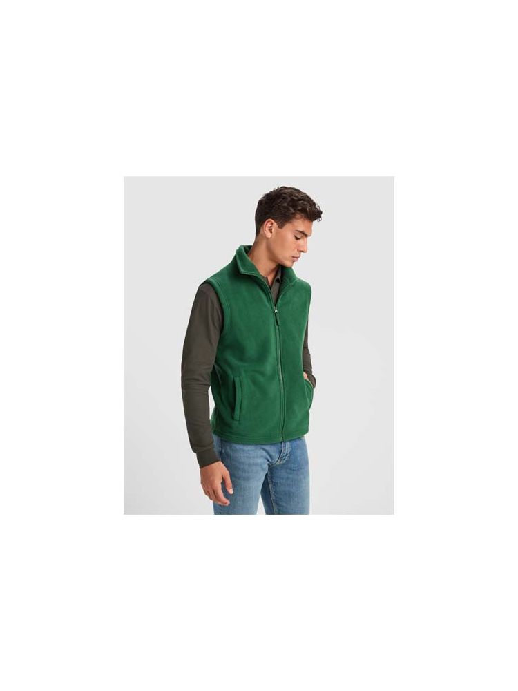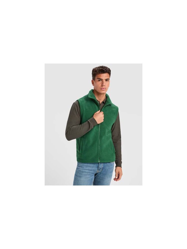 Kamizelka z polaru. Kołnierz ze stójką. Zapinana na pasujący suwak. Boczne kieszenie z zamkami błyskawicznymi. Usuwalna metka.