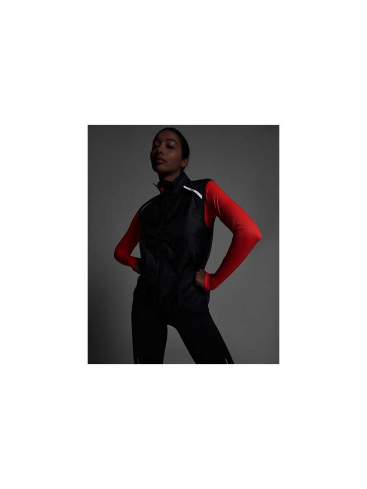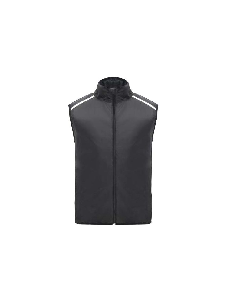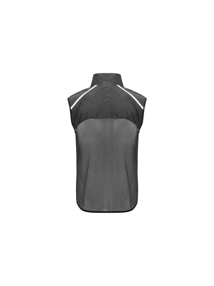 Wiatroszczelny i oddychający. Zamek błyskawiczny z przodu z dopasowaną ochroną podbródka. Elastyczne wiązanie pod pachami i u dołu. Dolna część pleców z mikroperforowanego materiału. Dobrze widoczne detale na górze, z przodu i z tyłu. Kieszeń z elastycznym paskiem do przechowywania kamizelki i noszenia jej na nadgarstku. Usuwalna etykieta.