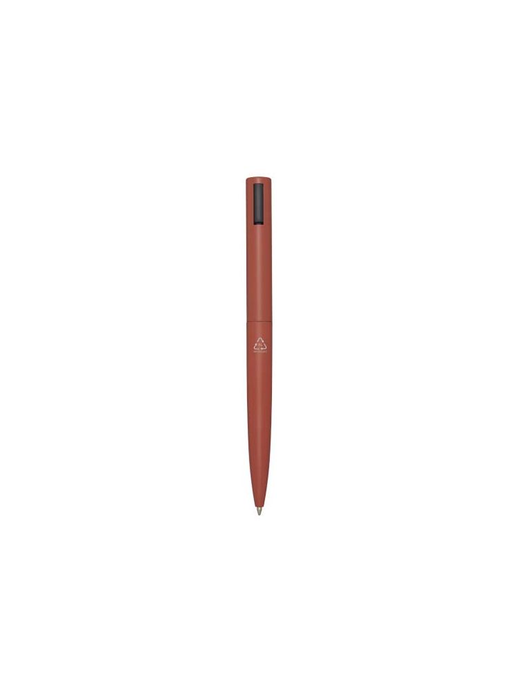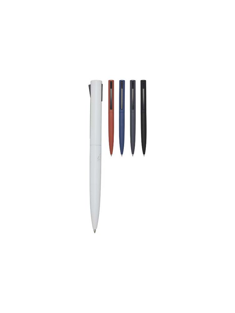 Długopis z górną częścią korpusu wykonaną z tworzyw sztucznych pochodzących z recyklingu i dolną częścią korpusu wykonaną z aluminium pochodzącego z recyklingu. Klips wykonany jest z żelaza. Kolor tuszu: Czarny. Żywotność: 1000 metrów. Rozmiar stalówki: 1,0 mm.