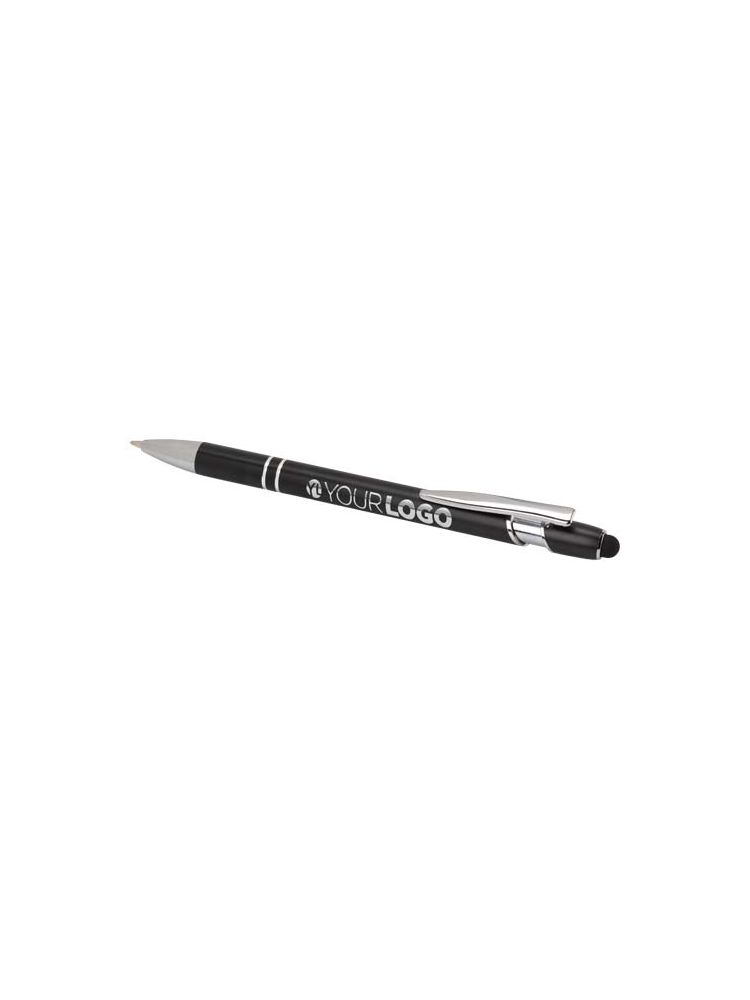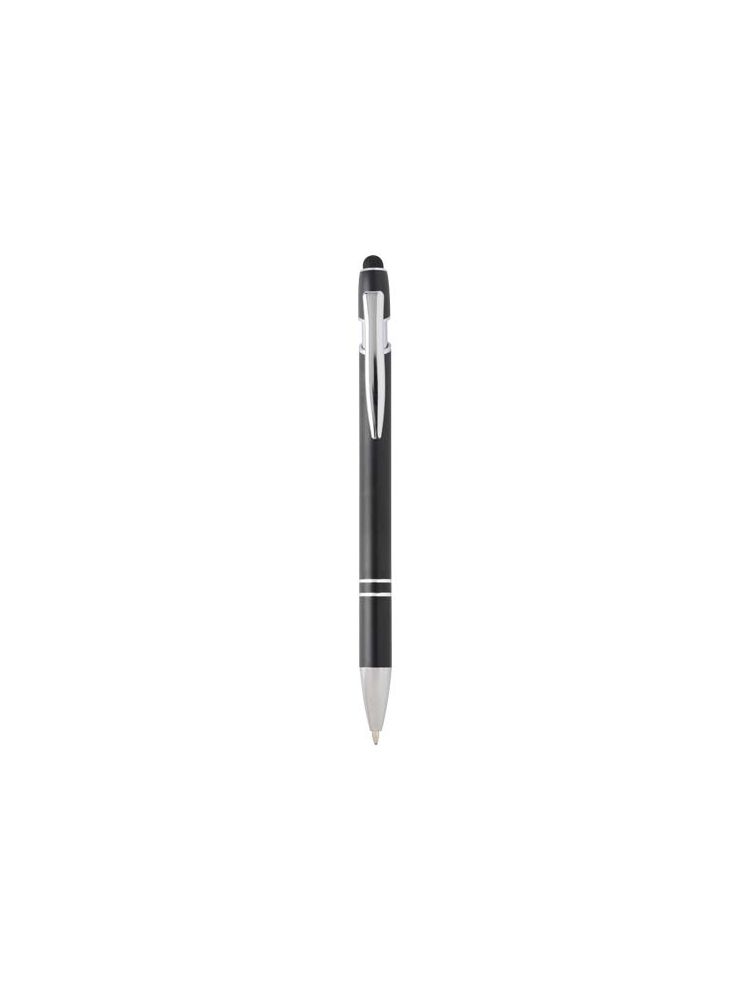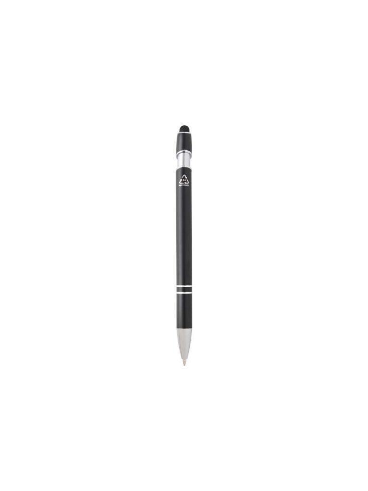 Długopis Kish ze srebrnym wykończeniem ma korpus wykonany z aluminium z recyklingu i rysik dotykowy wykonany z silikonu. Aluminium z recyklingu ogranicza ilość odpadów na wysypiskach śmieci i pomaga chronić zasoby naturalne w celu zmniejszenia emisji gazów cieplarnianych. Kolor tuszu: Czarny. Żywotność: 800 metrów. Rozmiar stalówki: 1,0 mm.