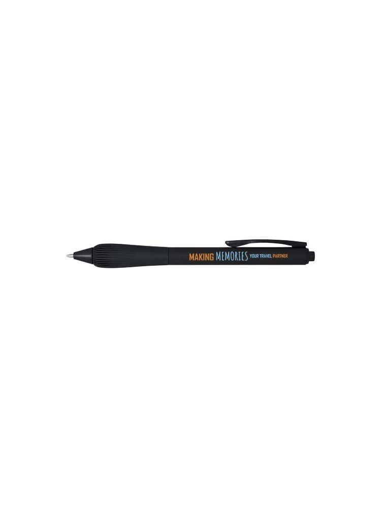 Długopis z tworzyw sztucznych pochodzących z recyklingu, z gumowanym korpusem i uchwytem wykonanym z TPR. Kolor tuszu: Czarny. Żywotność: 1000 metrów. Rozmiar stalówki: 1,0 mm.