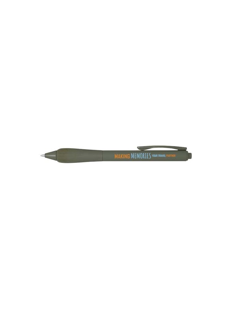 Długopis z tworzyw sztucznych pochodzących z recyklingu, z gumowanym korpusem i uchwytem wykonanym z TPR. Kolor tuszu: Czarny. Żywotność: 1000 metrów. Rozmiar stalówki: 1,0 mm.