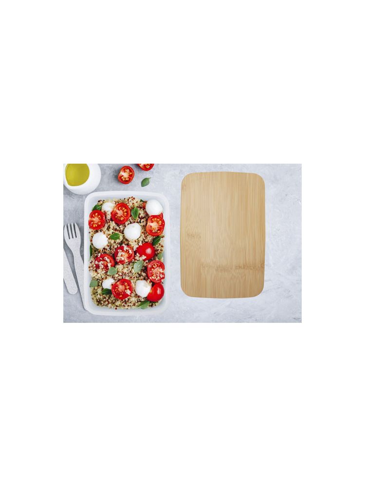 Mangi pudełko śniadaniowe o pojemności 750 ml wykonane z tworzyw sztucznych pochodzących z recyklingu. Posiada bambusową pokrywkę i elastyczną opaskę, która utrzymuje pokrywkę na miejscu, zapewniając, że zawartość pozostanie świeża. Pojemnik bez pokrywki można myć w zmywarce.