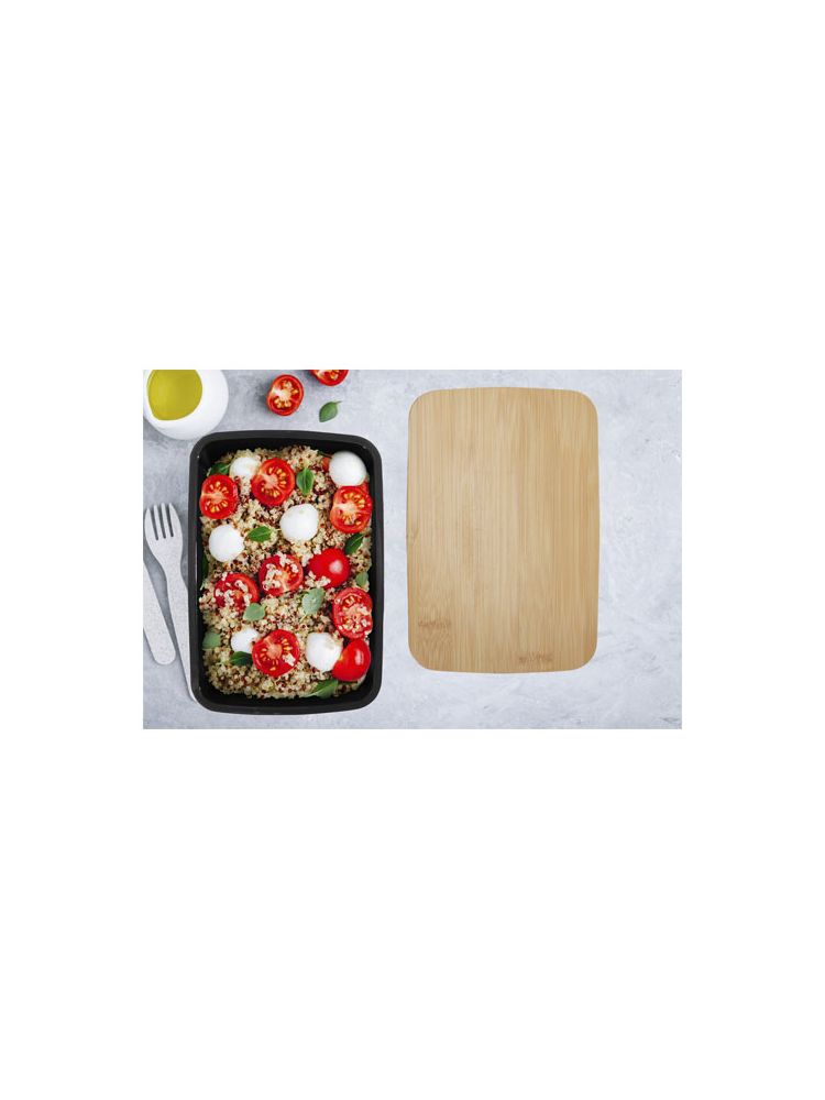 Mangi pudełko śniadaniowe o pojemności 750 ml wykonane z tworzyw sztucznych pochodzących z recyklingu. Posiada bambusową pokrywkę i elastyczną opaskę, która utrzymuje pokrywkę na miejscu, zapewniając, że zawartość pozostanie świeża. Pojemnik bez pokrywki można myć w zmywarce.