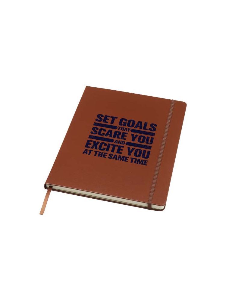 Objęty wzorem zastrzeżonym, klasyczny notatnik A4 z twardą okładką, zamykany na gumkę. Zawiera 80 kartek (80 g/m²) w linie, idealnych do zapisywania i dzielenia się notatkami. Z tyłu ma rozkładaną kieszonkę na małe karteczki. Dołączone etui upominkowe Journalbooks. Karton pokryty papierem imitującym skórę.