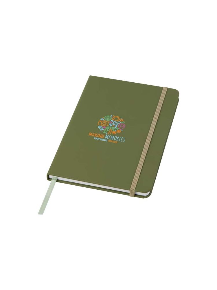 Notes A5 z kolorowym zamknięciem na gumkę i wstążką. Zawiera 96 gładkich kartek (60 g/m2).