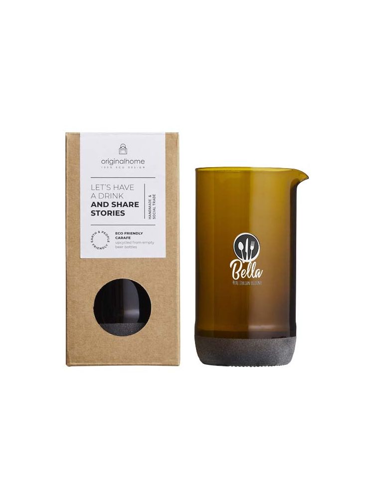 Karafka na wodę o pojemności 430 ml wykonana z przetworzonych butelek po piwie. Sprzedawany w ozdobnym pudełku upominkowym.