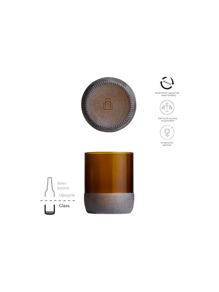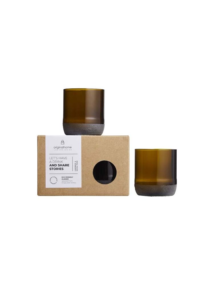 Zestaw dwóch szklanek o pojemności 160 ml wykonanych z przetworzonych butelek po piwie. Sprzedawany w ozdobnym pudełku upominkowym.