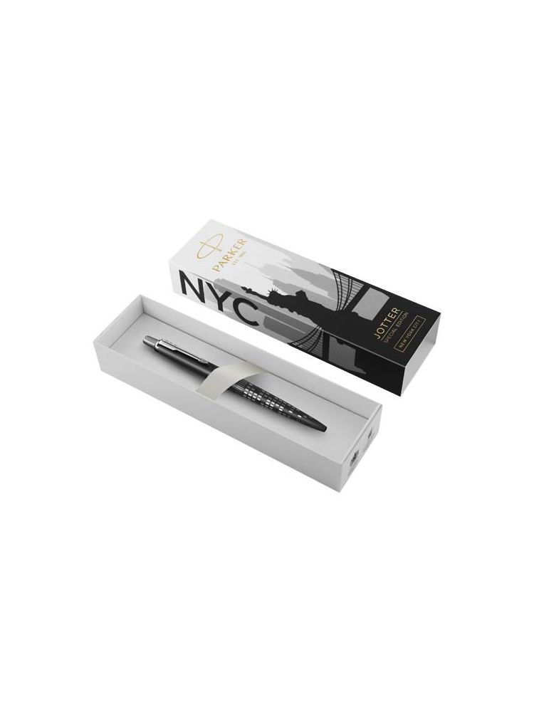 Parker Jotter SE Global Icons długopis z niebieskim wkładem, dostarczany w pudełku upominkowym. Parker Jotter SE Global Icons to seria długopisów firmy Parker, znanej marki z długą historią produkcji wysokiej jakości artykułów piśmienniczych. „SE” oznacza „specjalną edycję”, a motyw „Ikony globalne” sugeruje motyw projekt, który celebruje kultowe elementy z całego świata. Żywotność: 2000 metrów.