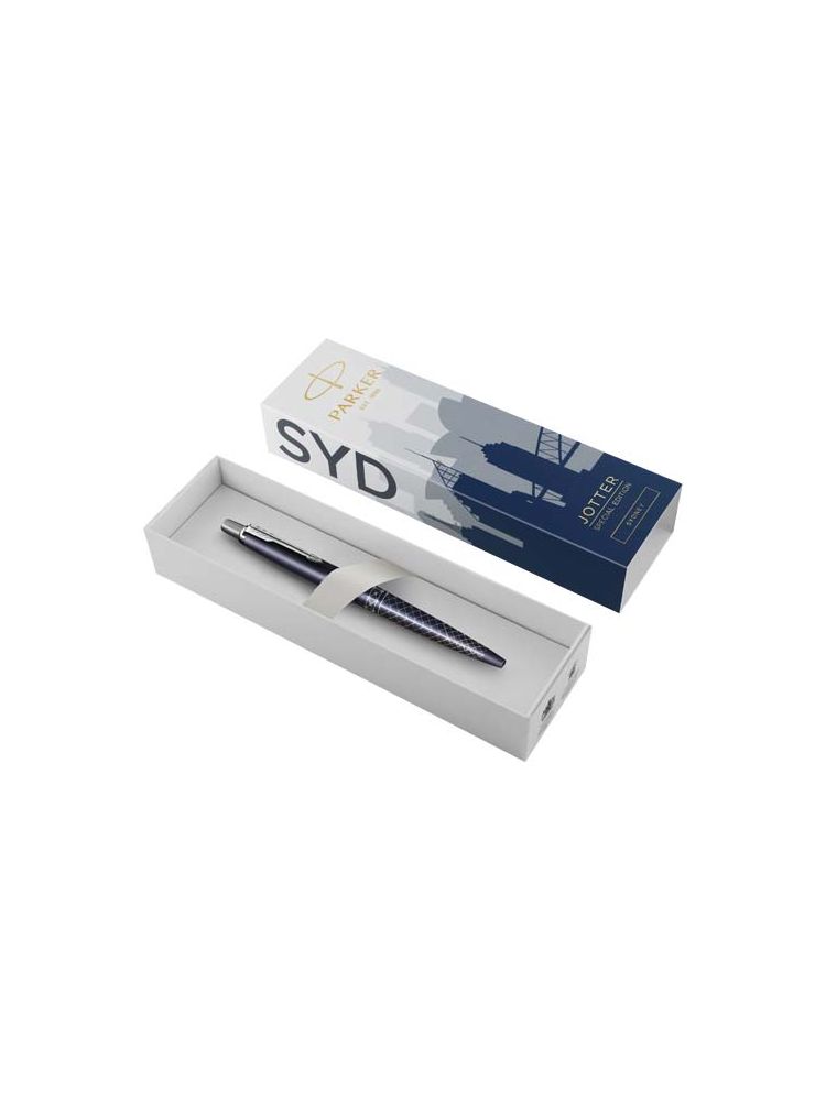 Parker Jotter SE Global Icons długopis z niebieskim wkładem, dostarczany w pudełku upominkowym. Parker Jotter SE Global Icons to seria długopisów firmy Parker, znanej marki z długą historią produkcji wysokiej jakości artykułów piśmienniczych. „SE” oznacza „specjalną edycję”, a motyw „Ikony globalne” sugeruje motyw projekt, który celebruje kultowe elementy z całego świata. Żywotność: 2000 metrów.