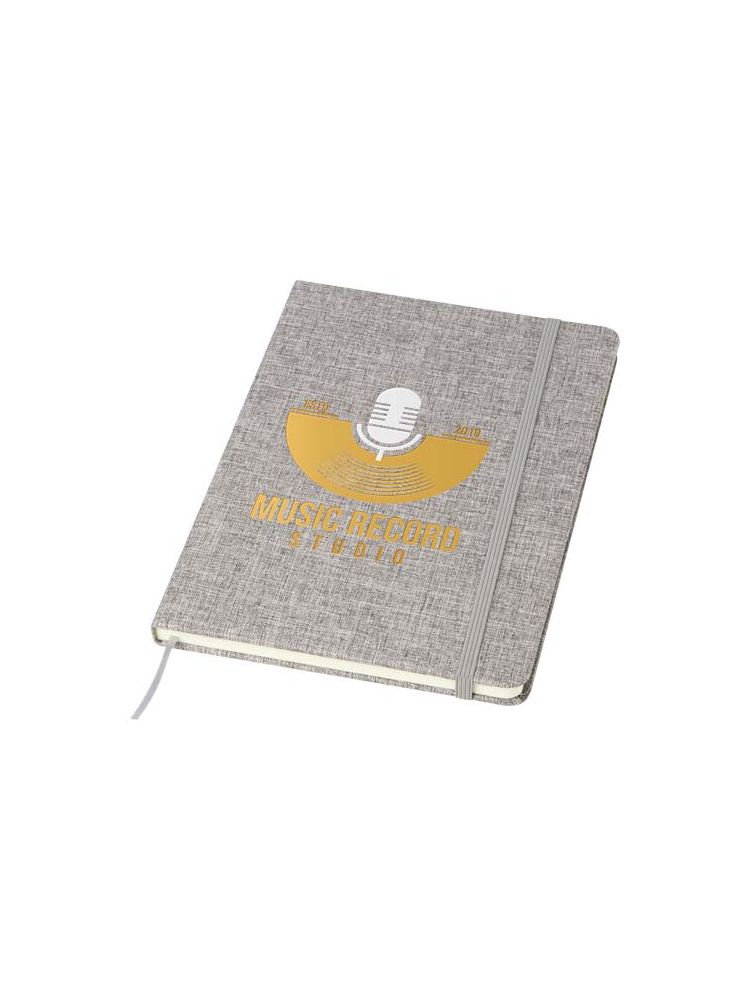 Notatnik A5 w twardej oprawie wykonany z bawełny pochodzącej z recyklingu, z 80 kartkami w linie z papieru o gramaturze papieru 70 g/m². Notatnik posiada elastyczne zamknięcie, wstążkę i zaokrąglone rogi.