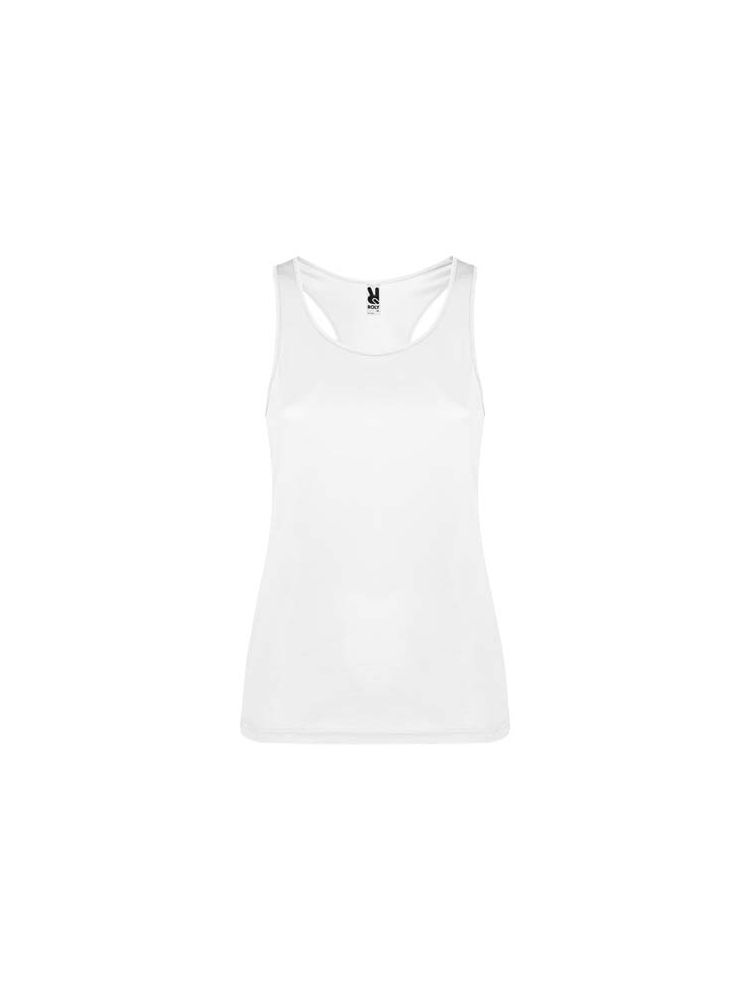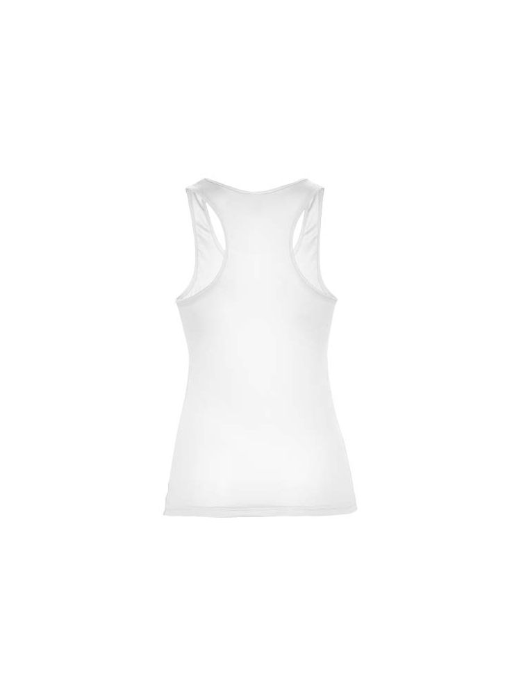 Techniczny, oddychający materiał, łatwy do prania i suszenia. Prążkowane otwory na ramiona i dekolt. Tył typu racerback i szwy boczne. Usuwalna etykieta.