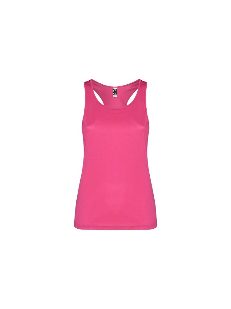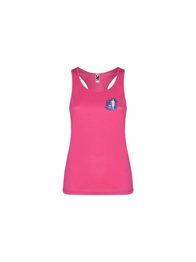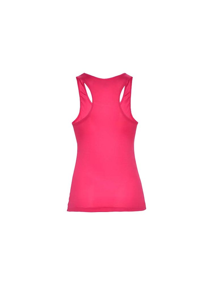 Techniczny, oddychający materiał, łatwy do prania i suszenia. Prążkowane otwory na ramiona i dekolt. Tył typu racerback i szwy boczne. Usuwalna etykieta.