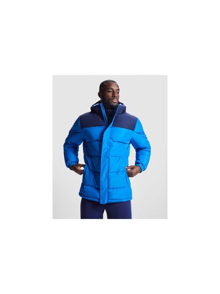 Ocieplana kurtka ze stałym kapturem. Zamek błyskawiczny z przodu kryty plisą. Osłona podbródka. Dwie boczne kieszenie zapinane na zamek. Elastyczne mankiety.