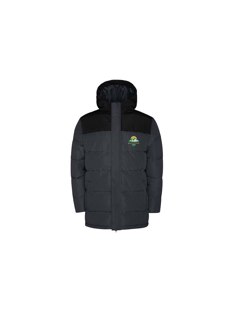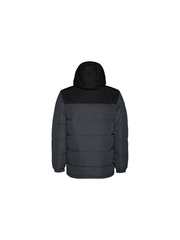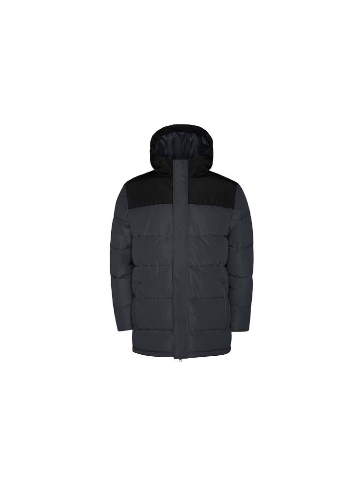 Ocieplana kurtka ze stałym kapturem. Zamek błyskawiczny z przodu kryty plisą. Osłona podbródka. Dwie boczne kieszenie zapinane na zamek. Elastyczne mankiety.