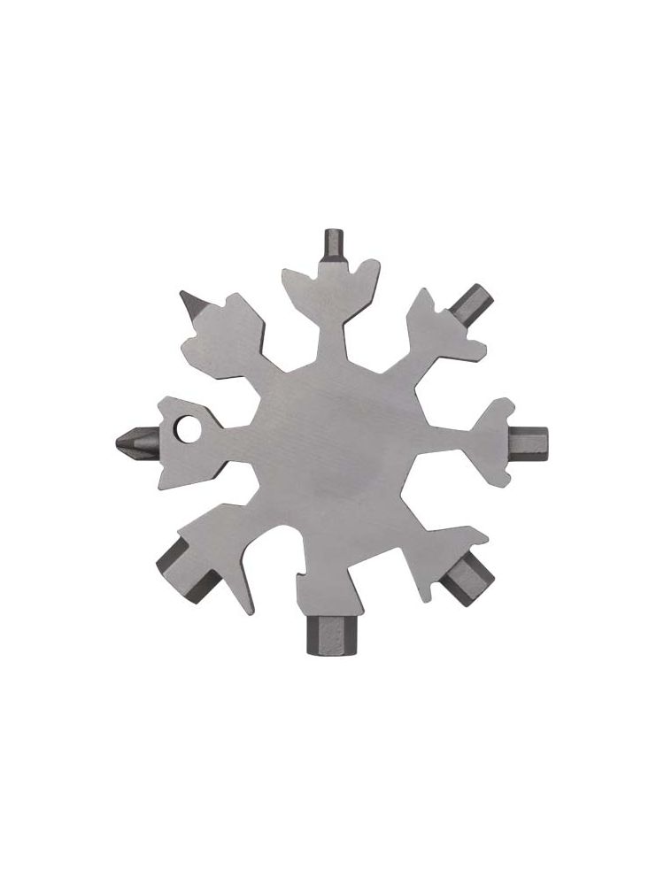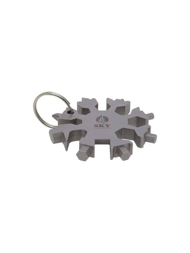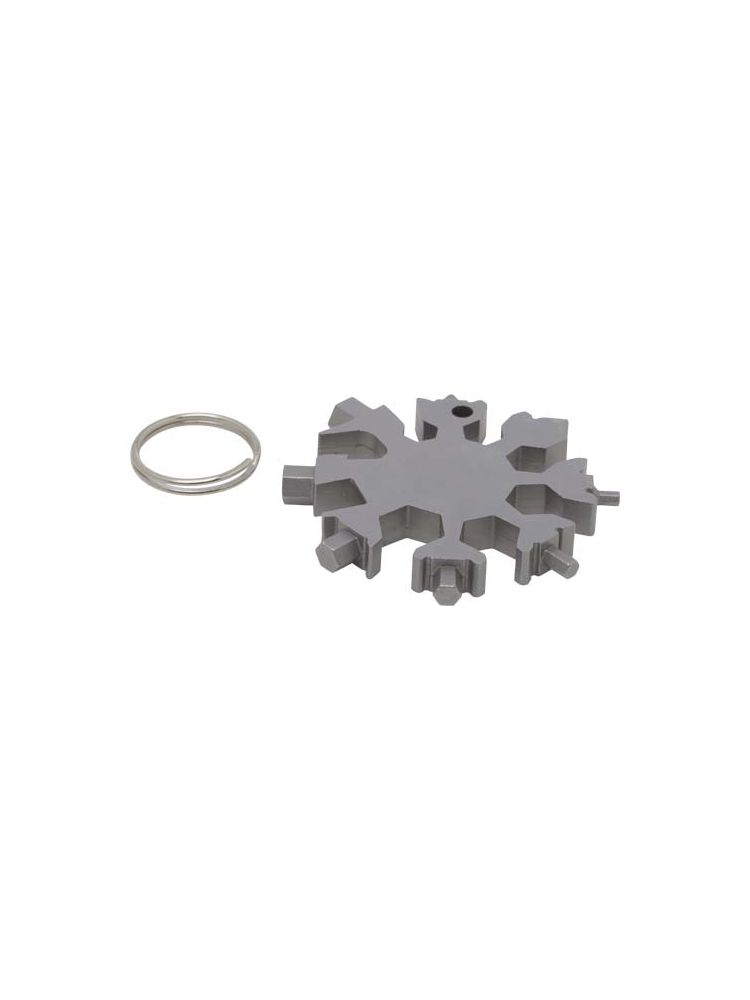 Solidne i kompaktowe 8-funkcyjne narzędzie wielofunkcyjne wykonane ze stali nierdzewnej, które można nosić przy kluczach.