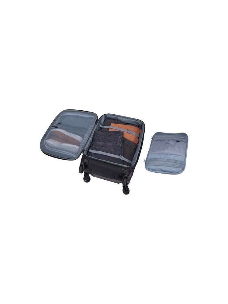 Thule Subterra 2 wszechstronna walizka podręczna na kółkach, która pomaga zmaksymalizować przestrzeń do pakowania i uporządkować wszystkie przedmioty. Płaska przegroda służy do organizowania i oddzielania przedmiotów, takich jak buty od ubrań, a wyjmowany panel kompresyjny i paski kompresyjne maksymalizują przestrzeń do pakowania. Na zewnątrz znajduje się kieszeń szybkiego dostępu, która ułatwia dostęp do przedmiotów w dużej kieszeni ładowanej od góry. Aby zapewnić płynny i łatwy transport, bagaż ten jest wyposażony w cicho toczące się kółka obrotowe i teleskopowy uchwyt w kształcie litery V, który zapewnia łatwe manewrowanie.