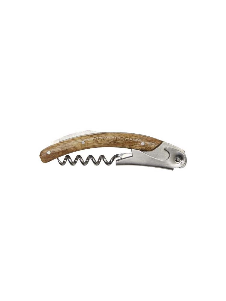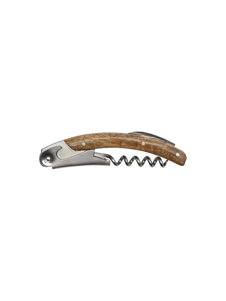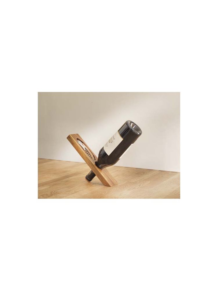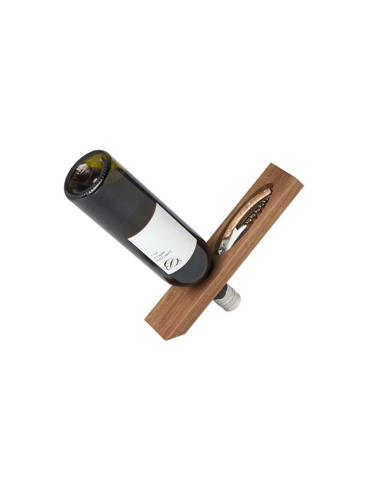 Zestaw stojaków na wino wykonanych z drewna akacjowego. Zestaw zawiera nóż kelnerski z korkociągiem i wysuwanym nożem do folii, a także pełni funkcję stojaka na butelkę wina. Idealny prezent dla miłośników wina.