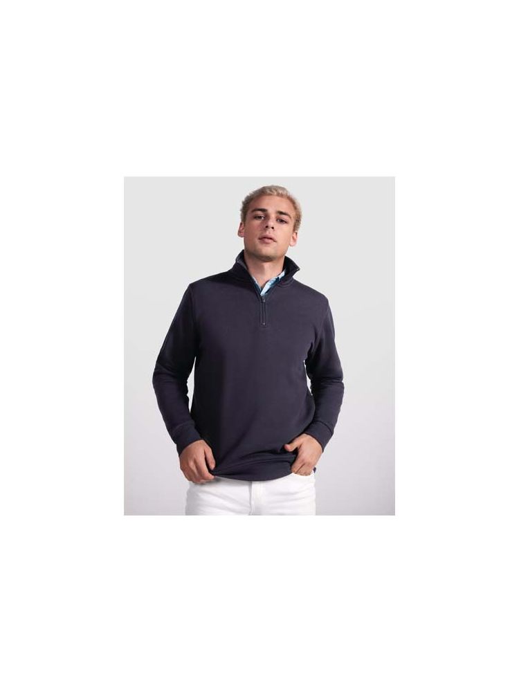 Bluza z zamkiem oraz kołnierzykiem ze stójką w tym samym odcieniu. Wzmocnione, kryte szwy na karku. 1×1 żebrowane mankiety i pas.