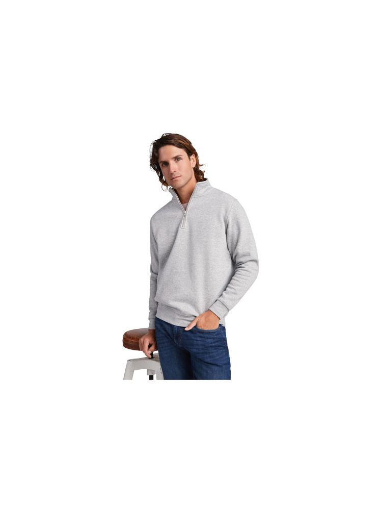 Bluza z zamkiem oraz kołnierzykiem ze stójką w tym samym odcieniu. Wzmocnione, kryte szwy na karku. 1×1 żebrowane mankiety i pas.