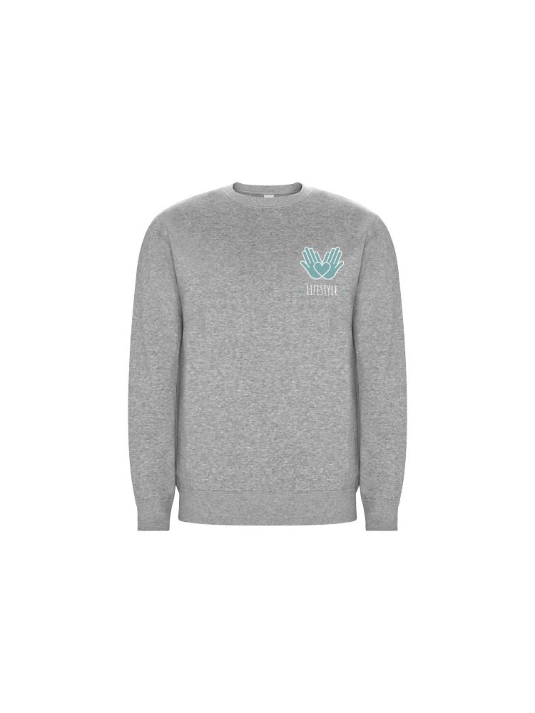 Bluza unisex z bawełny organicznej czesanej i poliestru z recyklingu. Dekolt, mankiety i pas z prążkowanej tkaniny 2×1. Ozdobne szwy overlockowe na ramionach, pod pachami, dekolcie, mankietach i pasie. Szew półksiężycowy po wewnętrznej tylnej stronie. Usuwalna etykieta. Indywidualne opakowanie z recyklingu.