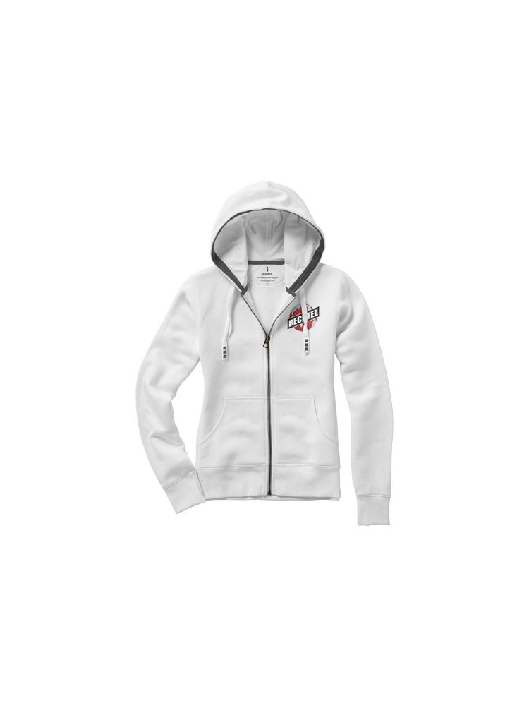 Damska bluza z kapturem Arora to idealne połączenie stylu i funkcjonalności. Wykonana z dbałością o szczegóły, ta bluza z kapturem bez wysiłku łączy wygodę z nowoczesnym wyglądem. Dzięki bocznym panelom, mankietom i dolnemu ściągaczowi z płaskiej dzianiny, ta bluza z kapturem oferuje dopasowany krój, który jest zarówno wygodny, jak i pochlebny. Pojedyncza dżersejowa podszewka wewnątrz kaptura zapewnia dodatkową warstwę komfortu. Grawerowane antyczne srebrne oczka i taśma w jodełkę w kontrastowym kolorze przyczyniają się do wyjątkowej estetyki bluzy z kapturem. Wykonana z najwyższej jakości mieszanki poliestru o gramaturze 300 g/m² i bawełnianej dzianiny BCI, ta bluza z kapturem zapewnia idealną równowagę między ciepłem a stylem. BCI (Better Cotton Initiative) oznacza nasze zaangażowanie w odpowiedzialne pozyskiwanie i produkcję przyjazną dla środowiska. Wybierając model Arora, dokonujesz bardziej zrównoważonego wyboru. Ta bluza z kapturem ma dopasowany krój zapewniający kobiecy wygląd.