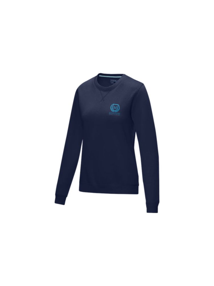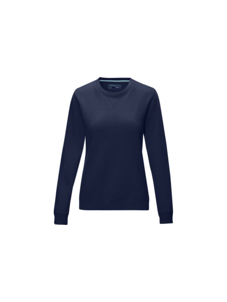 The Jasper women’s organic recycled crewneck sweater – a fusion of style and sustainability. This sweater blends eco-conscious fashion with comfort, featuring a flat knit rib v-insert at centre front. With a soft brushed interior, it ensures a cozy feel. Made from a 280 g/m² blend of organic cotton and recycled polyester. This sweater is designed with a fitted shape for a feminine look.
