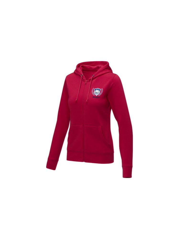 Damska bluza z kapturem Theron – gdzie styl łączy się z wygodą w doskonałej harmonii. Ta bluza z kapturem jest prawdziwym ucieleśnieniem klasycznego designu. Ponadto wewnętrzne opcje niestandardowego brandingu umożliwiają spersonalizowany branding lub personalizację wewnątrz bluzy z kapturem. Kieszeń kangurka łączy wygodę z nowoczesną estetyką. Płaski ściągacz u dołu i przy mankietach gwarantuje bezpieczne dopasowanie, a szczotkowane wnętrze maksymalizuje miękkość. Materiał o gramaturze 240 g/m², będący mieszanką bawełny i poliestru, zapewnia ciepło i trwałość. Podnieś swoją garderobę dzięki bluzie z kapturem Theron z pełnym zamkiem błyskawicznym. Ta bluza z kapturem ma dopasowany krój zapewniający kobiecy wygląd.