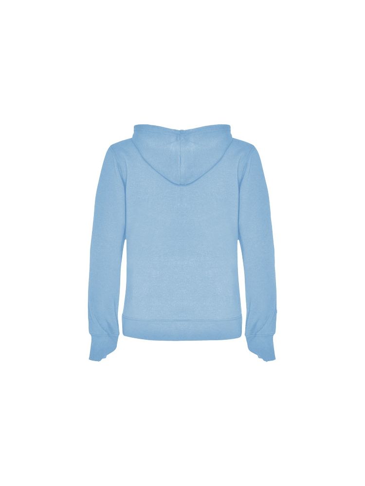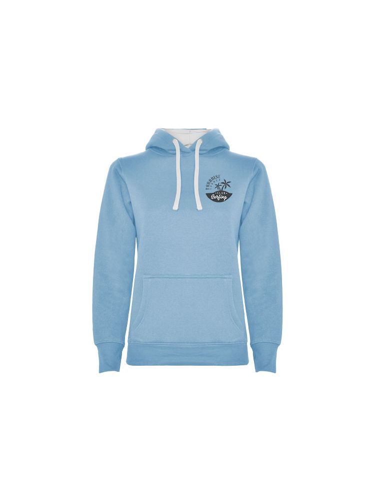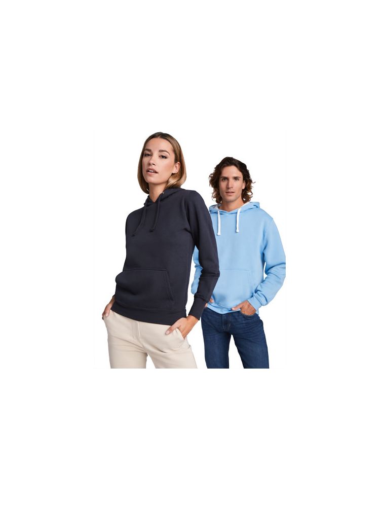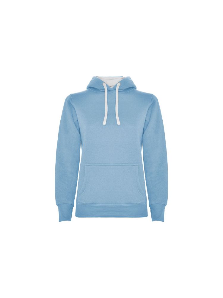 Bluza o dopasowanym kroju z dwukolorowym kapturem z podwójnego materiału, kontrastowym regulowanym sznurkiem, krytymi szwami w kołnierzu i kieszenią kangurką. Ściągacze 1×1 z elastanu w mankietach i u dołu bluzy. Rozcięcie na kciuk. Usuwalna metka.