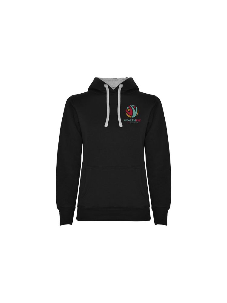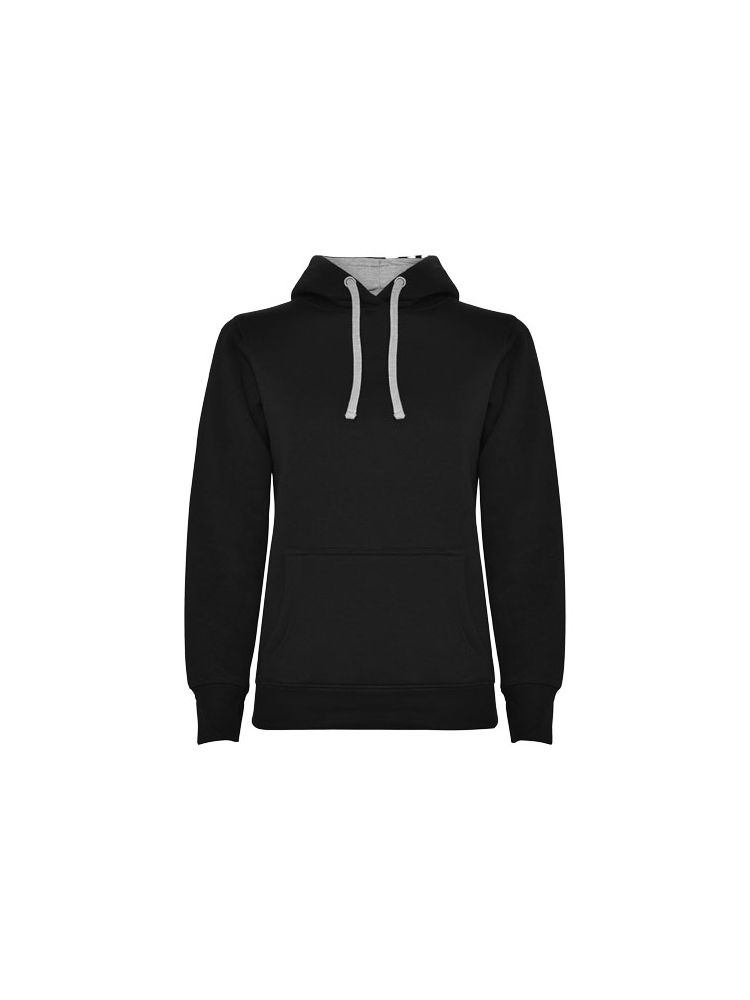 Bluza o dopasowanym kroju z dwukolorowym kapturem z podwójnego materiału, kontrastowym regulowanym sznurkiem, krytymi szwami w kołnierzu i kieszenią kangurką. Ściągacze 1×1 z elastanu w mankietach i u dołu bluzy. Rozcięcie na kciuk. Usuwalna metka.