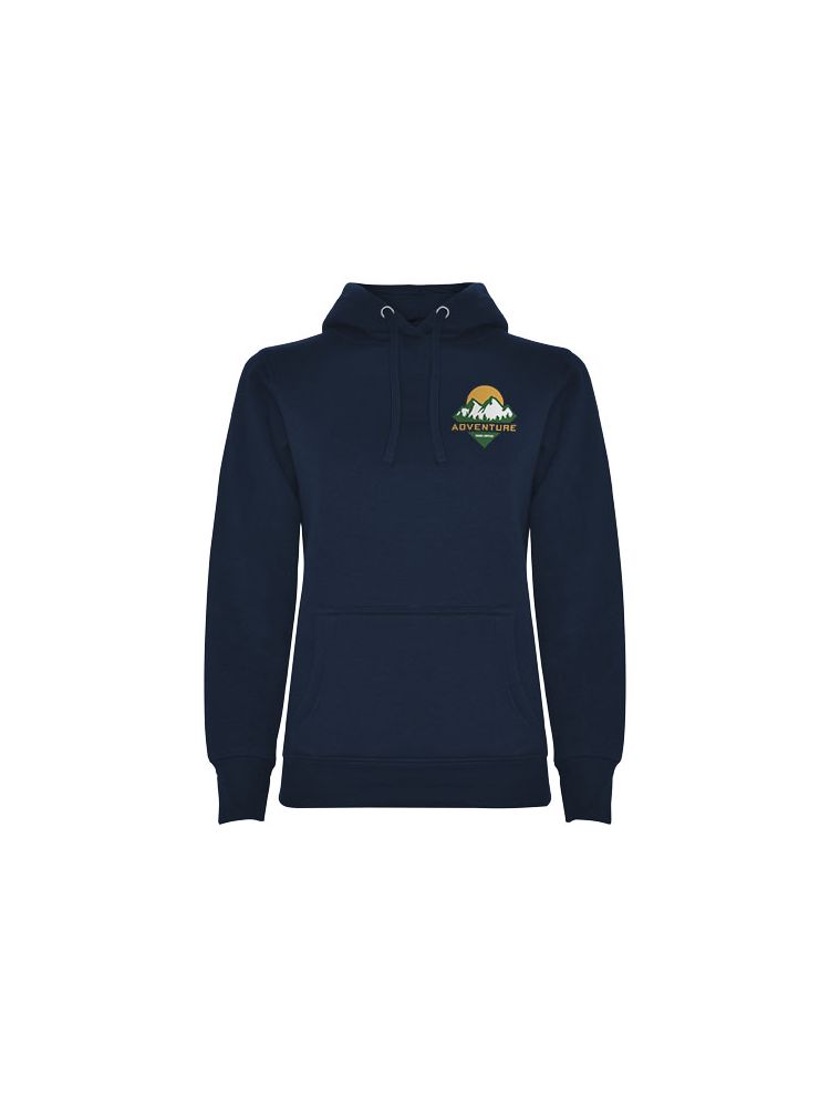 Bluza o dopasowanym kroju z dwukolorowym kapturem z podwójnego materiału, kontrastowym regulowanym sznurkiem, krytymi szwami w kołnierzu i kieszenią kangurką. Ściągacze 1×1 z elastanu w mankietach i u dołu bluzy. Rozcięcie na kciuk. Usuwalna metka.