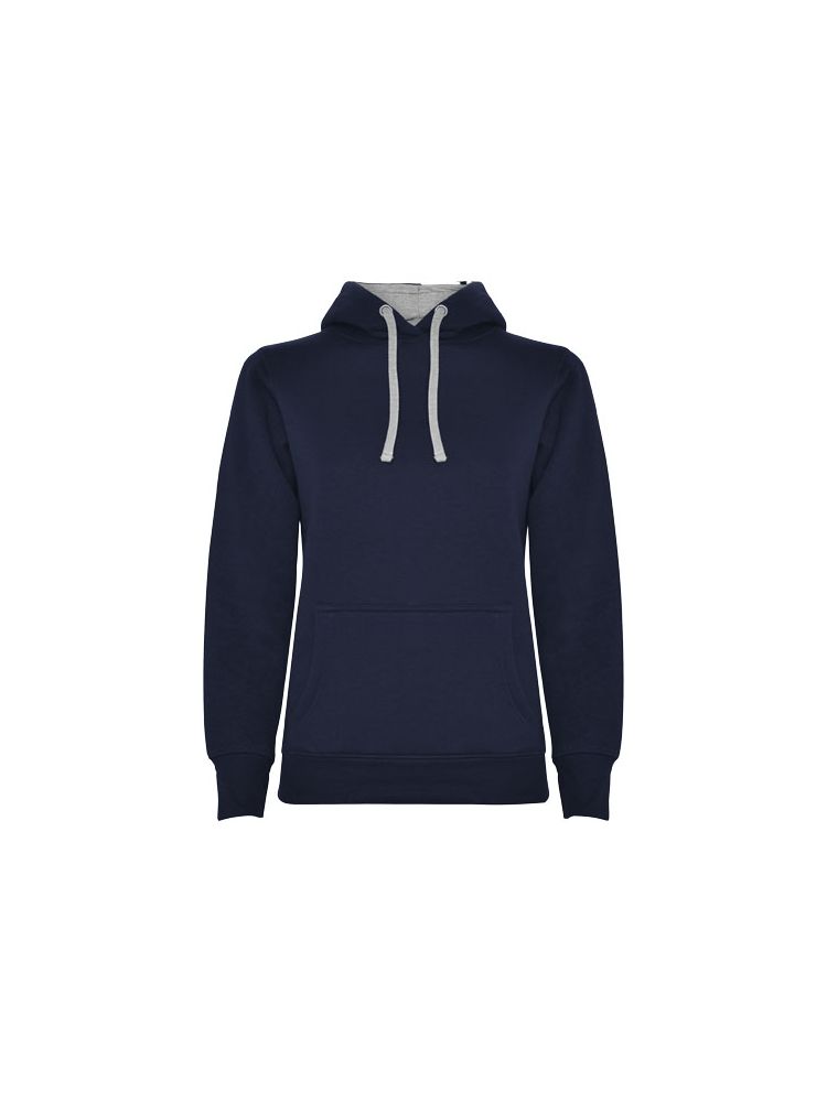 Bluza o dopasowanym kroju z dwukolorowym kapturem z podwójnego materiału, kontrastowym regulowanym sznurkiem, krytymi szwami w kołnierzu i kieszenią kangurką. Ściągacze 1×1 z elastanu w mankietach i u dołu bluzy. Rozcięcie na kciuk. Usuwalna metka.