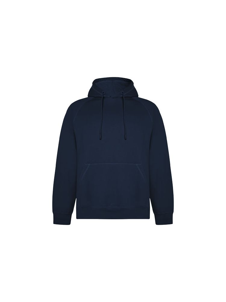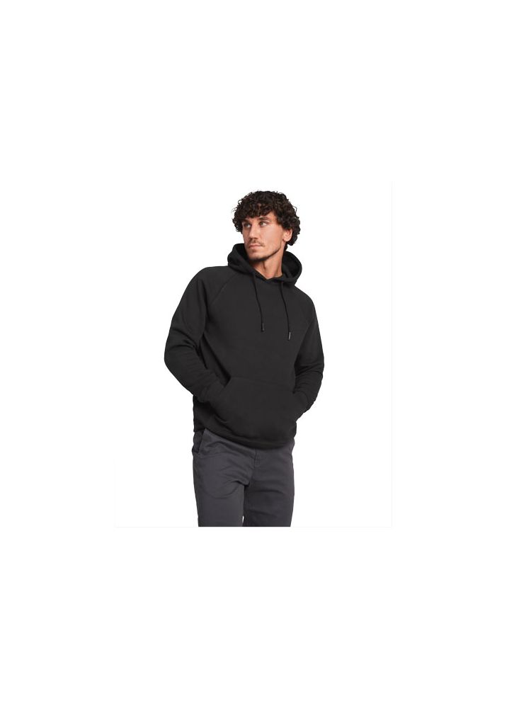 Bluza z kapturem unisex z bawełny organicznej i poliestru z recyklingu. Kieszeń kangurka. Pojedyncza dżersejowa podszewka w kapturze. Okrągły regulowany sznurek i haftowane oczka. Mankiety i pas z prążkowanego materiału 2×1. Usuwalna metka. Indywidualne opakowanie z recyklingu.