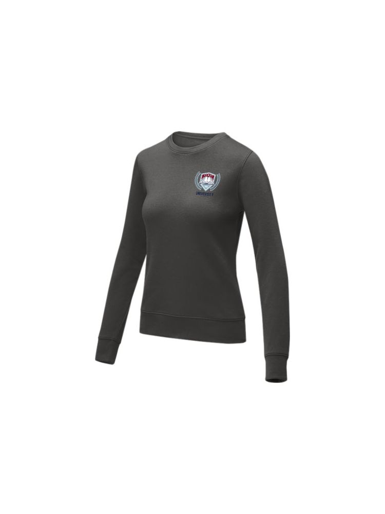 Damski sweter Zenon łączy w sobie wygodę i klasyczny design. Wykonany z mieszanki bawełny i poliestru o gramaturze 240 g/m². Klasyczny krój z okrągłym dekoltem jest podkreślony płaskimi ściągaczami na kołnierzu, mankietach i u dołu, zapewniając idealne dopasowanie i odrobinę wyrafinowania. Dodatkowo, wewnętrzne opcje niestandardowego brandingu pozwalają na spersonalizowany branding lub personalizację wewnątrz swetra. Szczotkowane wnętrze dodaje dodatkowej warstwy przytulności, dzięki czemu idealnie nadaje się na chłodniejsze dni. Dzięki przemyślanemu projektowi i wysokiej jakości materiałom, sweter Zenon jest wszechstronnym niezbędnikiem, który doda odrobinę indywidualności do Twojego wyglądu, zapewniając jednocześnie maksymalny komfort. Sweter ma dopasowany krój, dzięki czemu wygląda kobieco.