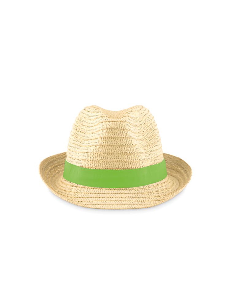 Kapelusz papierowo-słomkowy z kolorową gumką. W zamówieniach bez nadruku, rozcięta gumka dostarczana jest osobno.