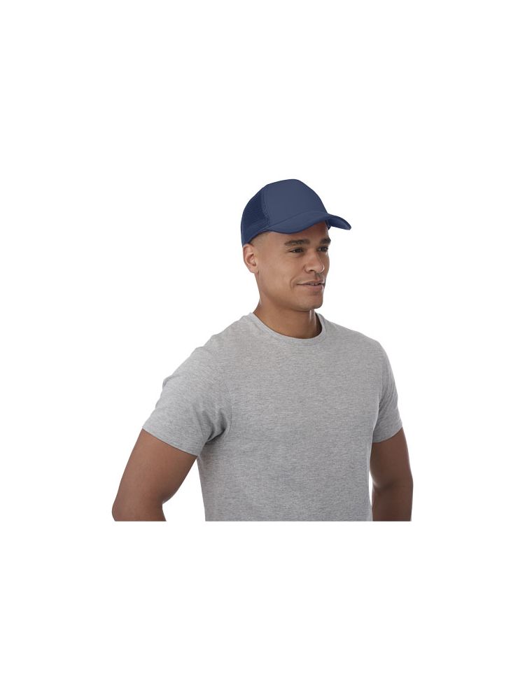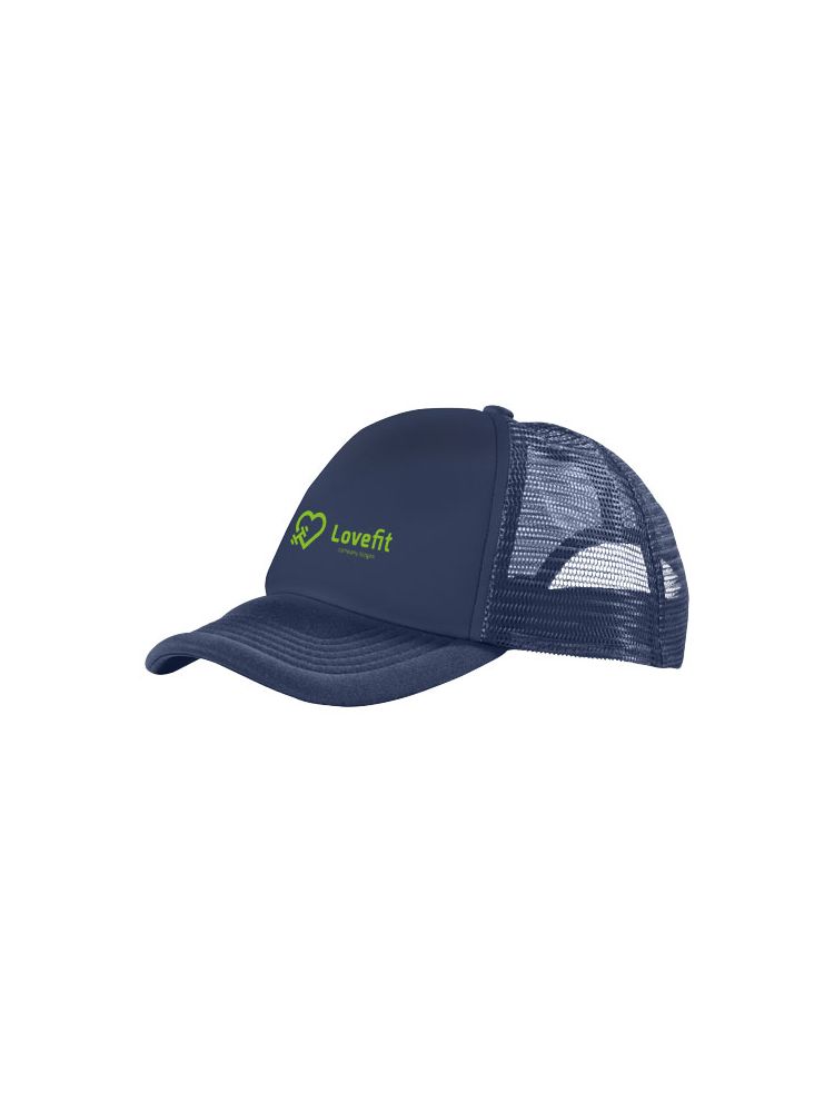 Trucker 5 panel cap to klasyczna czapka typu trucker z poliestrową pianką jersey o gramaturze 100 g/m² z przodu i oddychającą poliestrową siateczką z tyłu. Ta czapka ma wygodne plastikowe zapięcie zapewniające bezpieczne dopasowanie do obwodu głowy 58 cm, zapewniając wygodę i indywidualne dopasowanie.