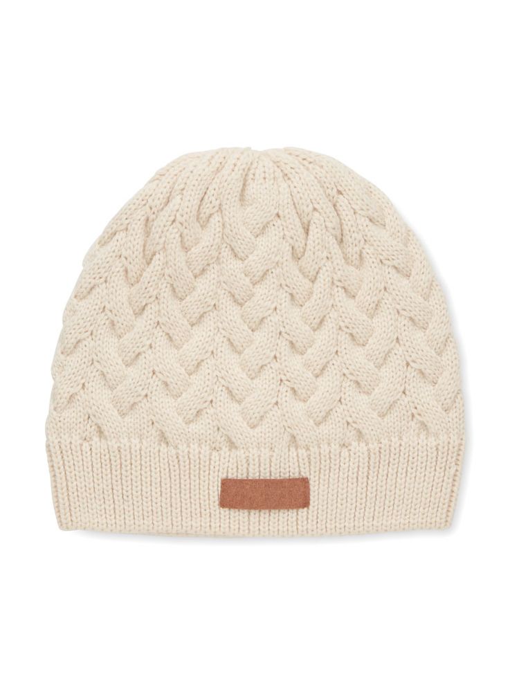 Czapka z dzianiny RPET z etykietą do nadruku.