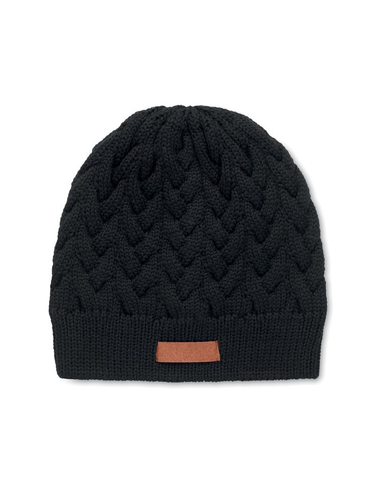 Czapka z dzianiny RPET z etykietą do nadruku.
