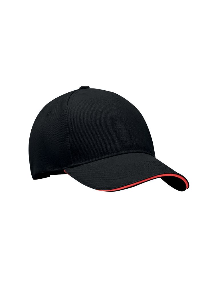 5-panelowa czapka z daszkiem ze szczotkowanej bawełny twill 260 gm/m2 ze srebrną stalową sprzączką. 4 haftowane oczka w dopasowanym kolorze. Rozmiar 7 1/4.