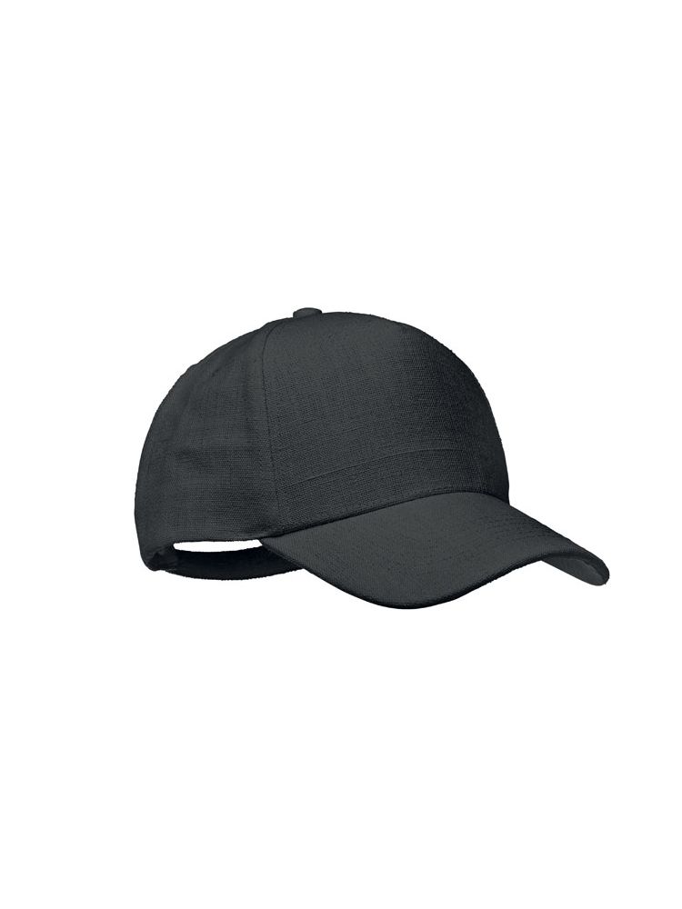 5-panelowa czapka z daszkiem ze 100% konopi 370 gr / m² z mosiężnymi klipsami na regulowanym pasku. 5 dziurek wentylacyjnych obszytych w dopasowanym kolorze. Rozmiar 7 1/4.