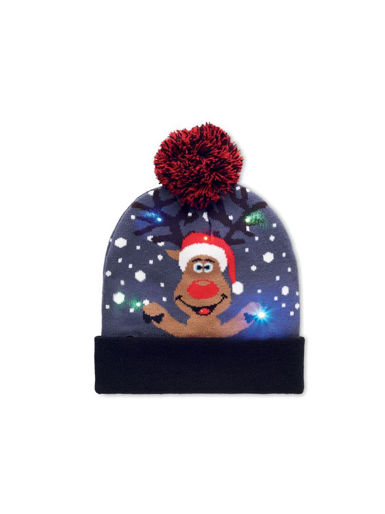 Świąteczna dzianinowa czapka z 6 diodami LED z mankietem i pomponem z miękkiego, rozciągliwego akrylu.