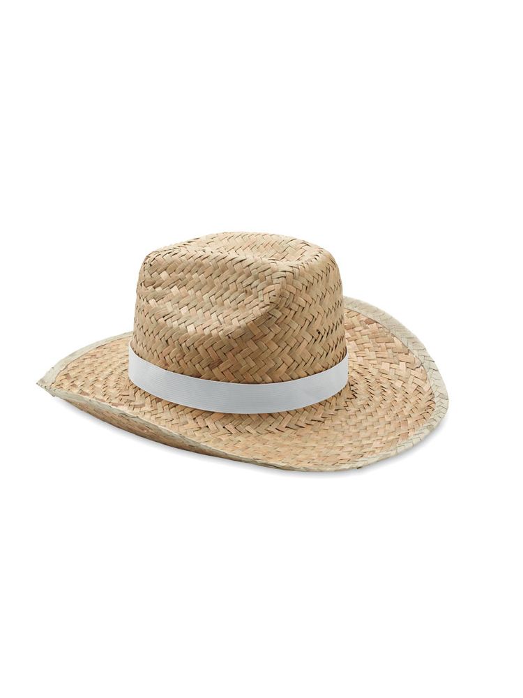 Naturalny słomiany kapelusz w stylu kowbojskim z poliestrową opaską.
