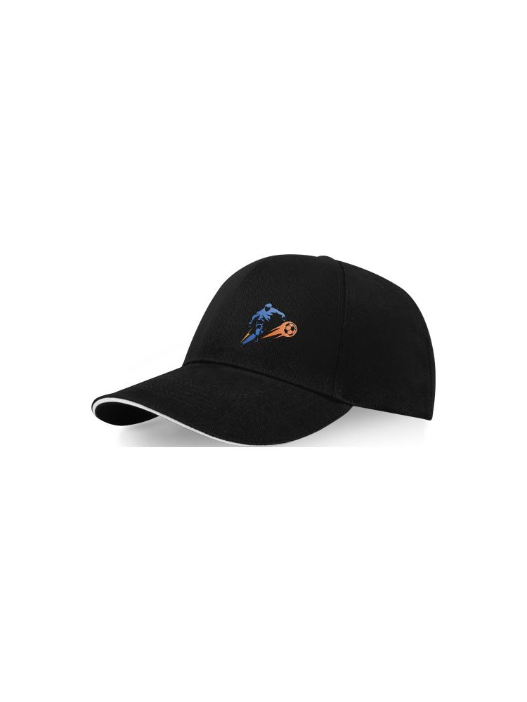 Przyjazna dla środowiska odzież służąca do celów promocyjnych. Daszek wygięty typu sandwich. Haftowane oczka dla lepszej wentylacji. Zapięcie na metalową sprzączkę Tri-glide. Obwód: 58 cm.