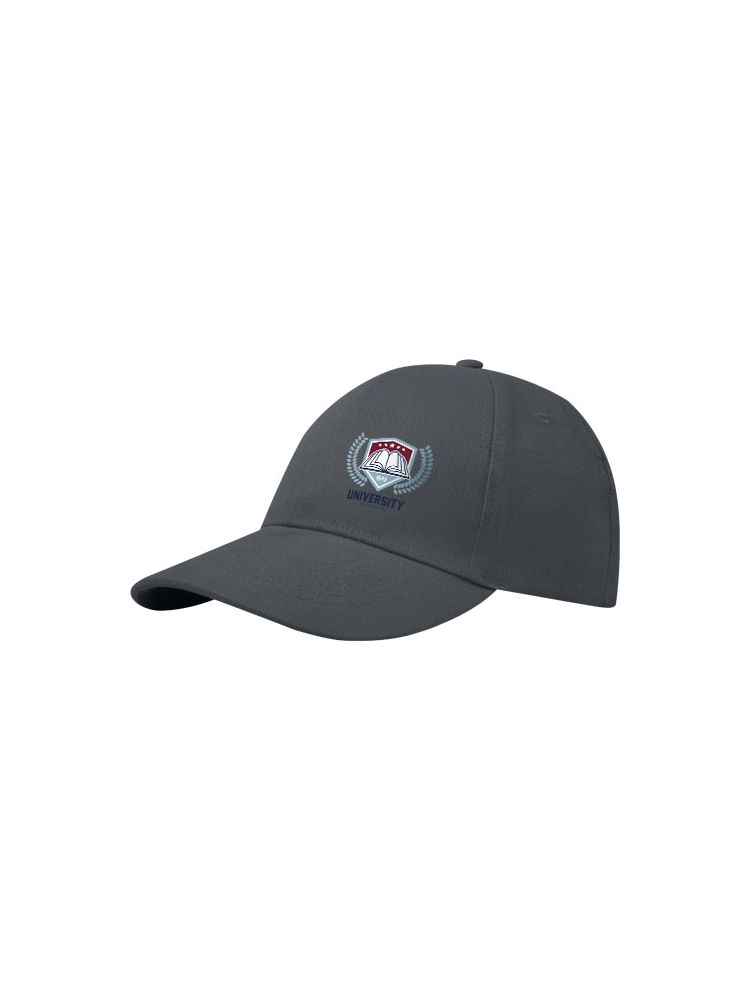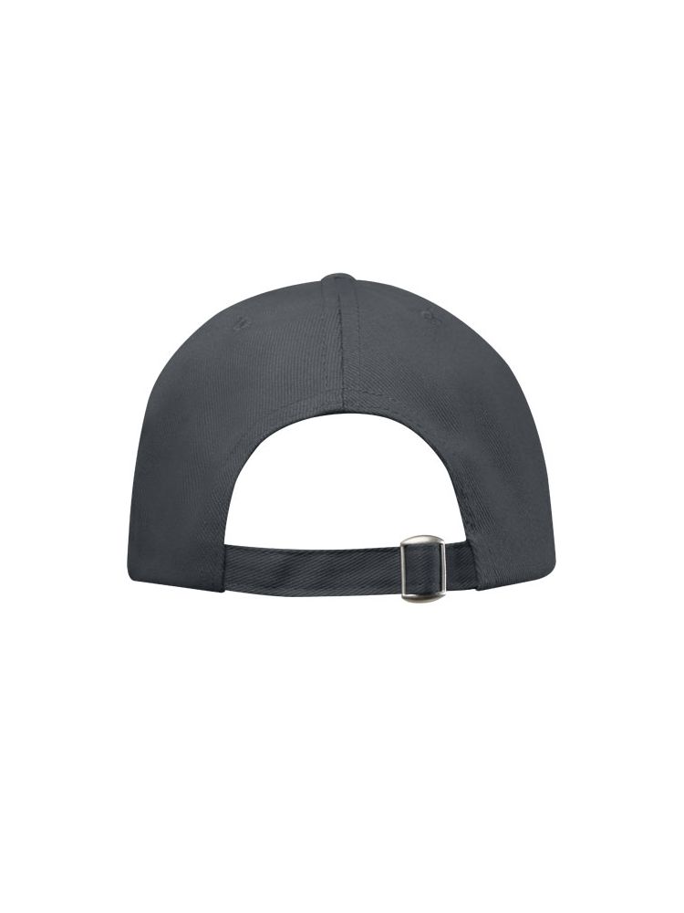 Przyjazna dla środowiska odzież służąca do celów promocyjnych. Fabrycznie wygięty daszek. Haftowane oczka dla lepszej wentylacji. Zapięcie na metalową sprzączkę Tri-glide. Obwód: 58 cm.