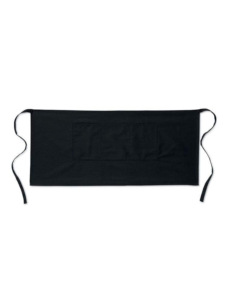 Krótki fartuch kuchenny typu zapaska, 195 gr/m². Wykonany w 90% z poliestru oraz 10% bawełny.