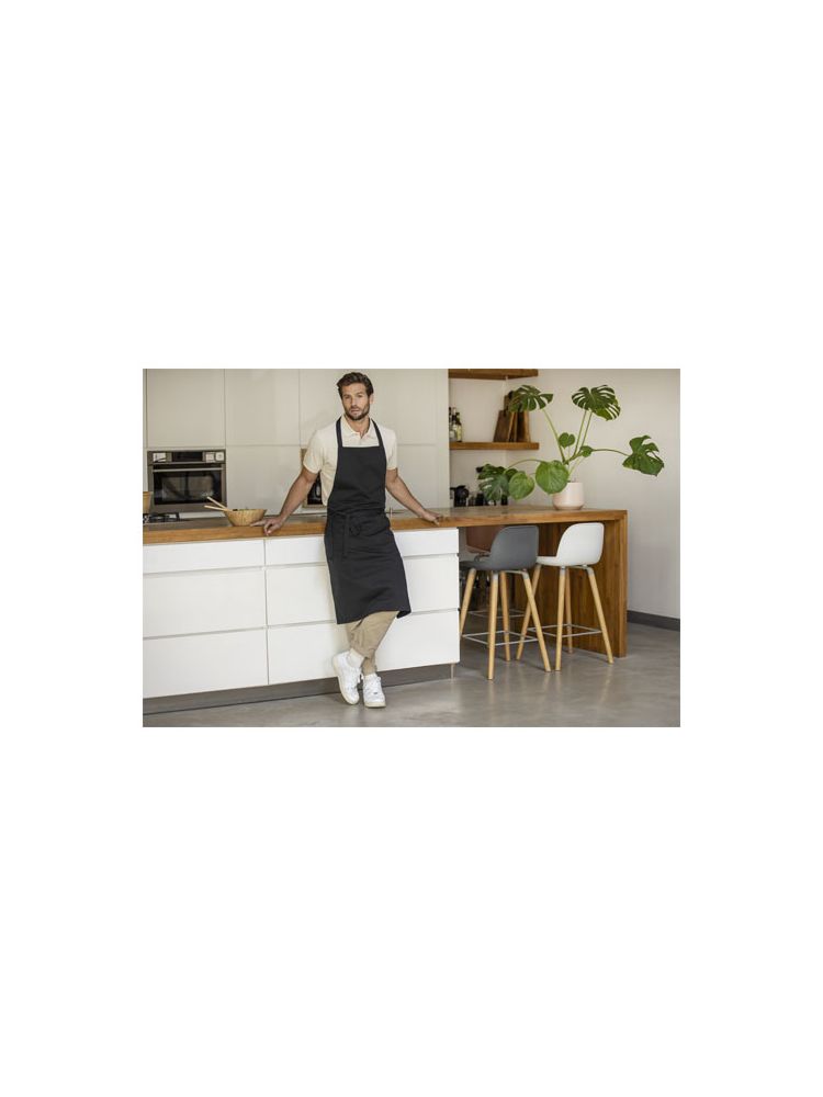 Shara fartuch o gramaturze 240 g/m2 wykonany w 70% z bawełny pochodzącej z recyklingu i w 30% z poliestru pochodzącego z recyklingu, dzięki czemu jest gruby, wytrzymały i wygodny w noszeniu. Posiada 2 przylegające do siebie kieszenie (każda o wymiarach 22 × 20 cm) i wiązanie z tyłu o długości 1 metra. Fartuch zawiera włókna Cyclo® pochodzące z recyklingu, w przypadku których wykorzystano wstępnie posortowane odpady, które mają wpływ na kolor przędzy. Włókna te nie tylko zmniejszają zapotrzebowanie na surowce pierwotne, ale także są przejawem zaangażowania w tworzenie obiegu zamkniętego, stanowiąc realny przykład zmniejszania ilości odpadów i promując gospodarkę w obiegu zamkniętym. Do każdego fartucha dołączony jest również znacznik Aware™. Ta innowacyjna funkcja pozwala użytkownikom prześledzić za pomocą kodu QR pochodzenie produktu i pokonaną przez niego drogę, zwiększając przejrzystość łańcucha dostaw i wspierając silniejszy związek między produktem a jego procesem produkcyjnym.