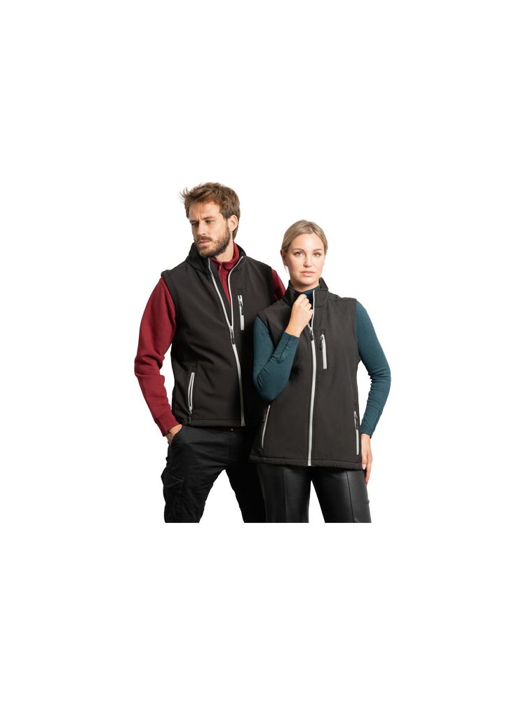 2-warstwowa kurtka softshell. Kontrastowy odwrócony zamek błyskawiczny z osłoną podbródka i ściągaczem. Trzy kieszenie zapinane na zamek błyskawiczny ze ściągaczem. Elastyczny sznurek i zapięcia u dołu kurtki. Wodoodporność. Model wiatroszczelny.