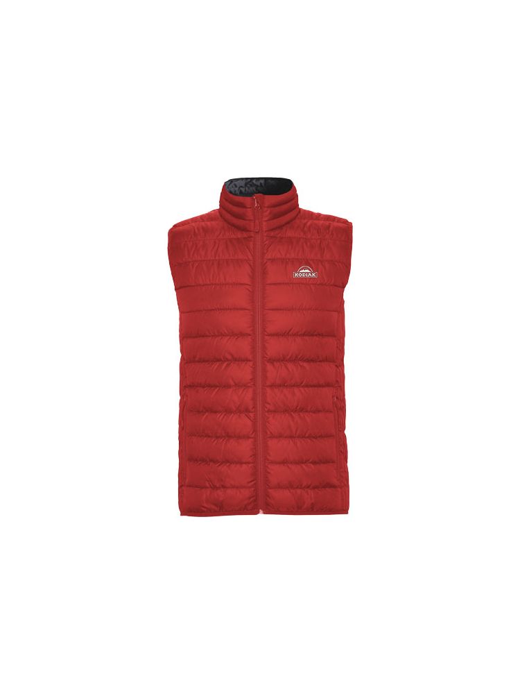 Kamizelka męska z materiału przypominającego w dotyku pierze. Dopasowane odwrócone zamki błyskawiczne. Dwie kieszenie z przodu zapinane na zamek. Kontrastowa wewnętrzna podszewka. Dopasowane elastyczne wykończenie u dołu. Lekka i składana odzież. Dopasowany krój w modelu damskim. Wodoodporność. Model wiatroszczelny.